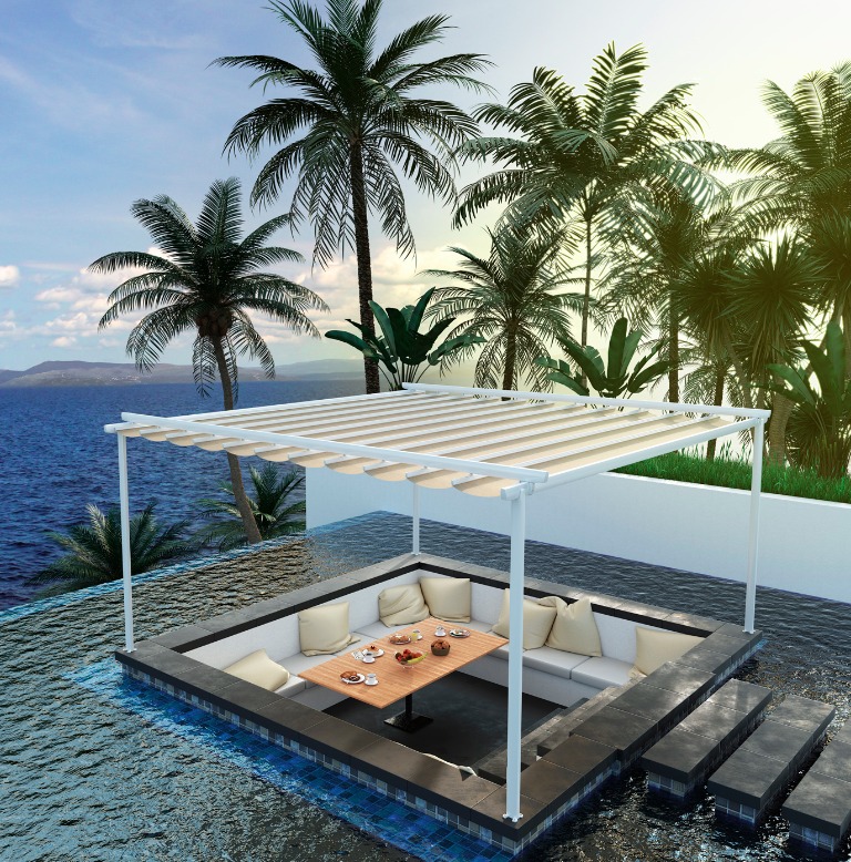 O Pergolado é uma opção qua combina o sofisticação com o acionamento retrátil. Projetado para proporcionar sombra e beleza a áreas externas como jardins, varandas e espaços para refeição em comercio com área ao ar livre.
